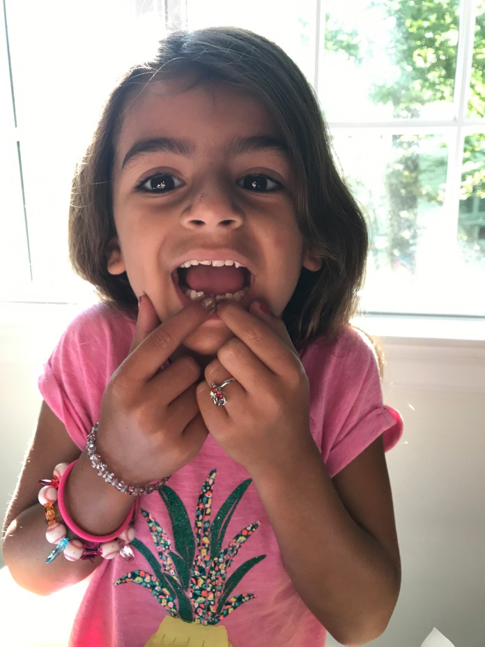 I will openly admit I'm a stress case in a lot of ways. In things that I can't control or in "firsts" I overthink it to a point of no return. So about three months ago when Emma was at the dentist and he said she had two loose teeth and two growing in behind it I jumped into action. (I'm also afraid someday she will discover this blog so keep that in mind while reading — another bit of that overthinking problem I have). So yeah, I called up the tooth fairy reminding her that I was about to have a situation on my hands that I was stressed about so I'd need to get my hands on that special tooth case and be at the ready for any situation. After all this was going to be a big deal. First tooth in 6 years. Damn I remember when she was endlessly chewing on Sophie the giraffe in the grocery store and when I took it out I spotted two little white spots those same two teeth growing in! Man this is hard. So speed up to months of poking, prodding, pulling, pushing, a little crying, and a lot of stress with this tooth. Still nothing. I mean we ended school, started summer, kept pulling and the tooth just wasn't coming out. The teeth behind were coming in!! Still nope. In fairness I also wanted be sure I was completely ready for this situation. Like in no way could I be drinking rose if the tooth fairy was about to descend on my house or could it be when I had a stressful day coming up at work because if that tooth fairy woke up Emma well that would be an fng nightmare right? So the days continued to go on and finally when that thing was hanging by a thread Nana pulled it — and all day I stressed about how the night would go. I would have to let the tooth fairy know that Emma takes a 10 pm pee and not to do anything before the first bathroom break. I'd also have to be prepared that if the tooth fairy woke Emma up by accident she must be armed with appropriate answers. What a stressful job this fairy has.