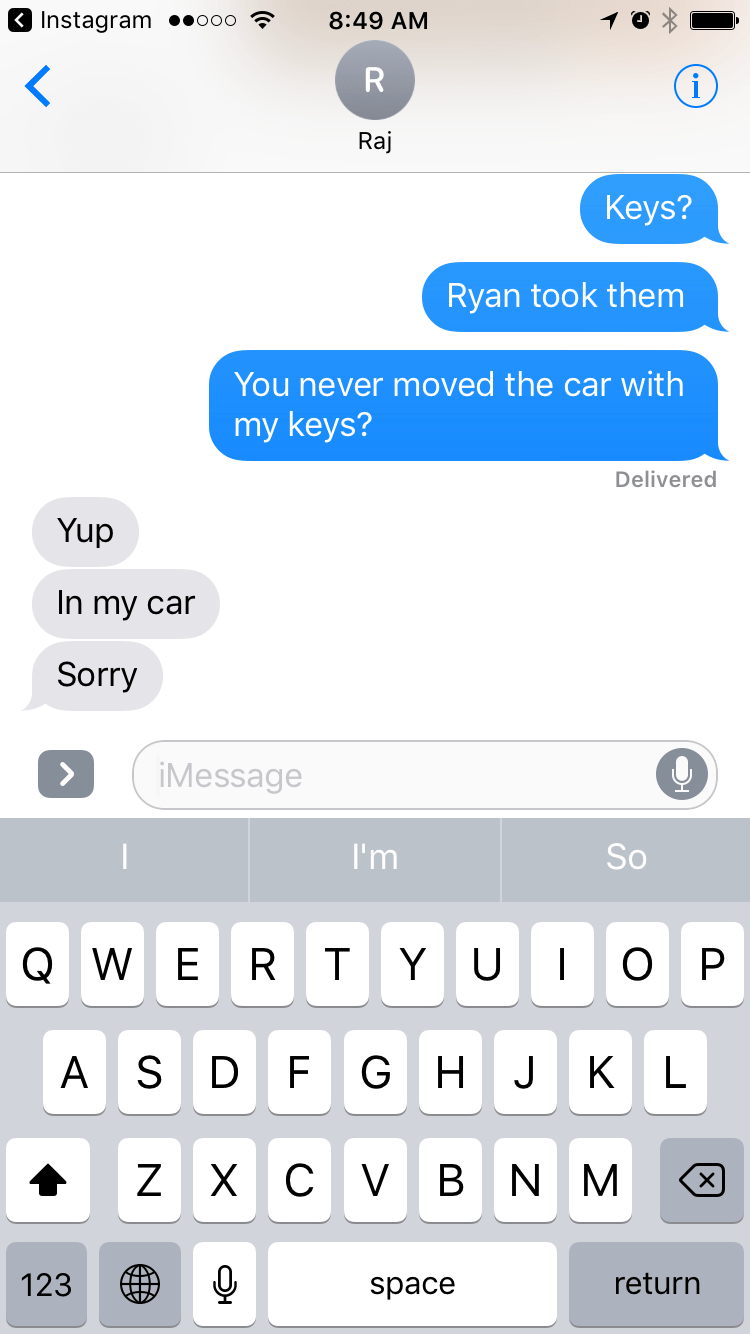 It’s that time of year. My yearly post that reminds us all that we are human and all make mistakes some way less forgivable than others. It’s Monday. Monday for whatever reason seems impossible EVERY week and today we had a handle on it. No really we did. Smooth sailing, on time, breakfast being devoured fruit being eaten. Vitamins check. Dressed appropriately. Snacks made lunches packed. Got to play a quick game of pirates On our way and out the door by 8:10. Out the door by 8:10. Or not. Where are my keys. Now you may or may not remember this post from a year ago…Monday How Dare You 8:12 I still can’t find my keys and the calls/texts to my husband are going unanswered. Insert panic mode and a quick text to a close neighbor friend with a frantic “can’t find my keys can you pick up emma” now this of course makes me panic even more because I’m now involving someone else that has a morning routine but of course she calmed me down with an “absolutely no problem leaving now!” (More about awesome neighbors/friends later). While I’m still frantically looking Raj casually calls and says “I don’t have them” now deep down inside I know he does so I search his closet, his coats, the office. Every place he has been. Maia insists we can just buy new keys and Emma insists we can’t just buy new keys Maia. They proceed to both decide with great enthusiasm that we can for sure just buy a new car instead. Obviously. Emma gets off to a school on time and I continue to search. Then I text Raj one more time.