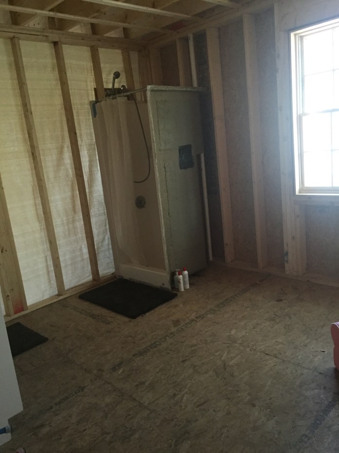 My upstairs bathroom the only bathroom with a tub and shower disappeared. Yes, gone. Meaning I went to take a shower one morning and someone was in there demolishing it. Enter phone call to husband with his calm-toned casual response “ok, I’ll ask our builder but what do you want me to do?” Me getting off the phone blood boiling and fuming. What do I want you to do? I’ll tell you what..then rationalization kicks in. What can he do? Nothing. Positive on this one the newly renovated bathrooms will be incredible and the temporary shower situation the girls love. They think it’s like camp. Shower is now temporarily in the new part of the house with no walls. It ain’t pretty but it works.