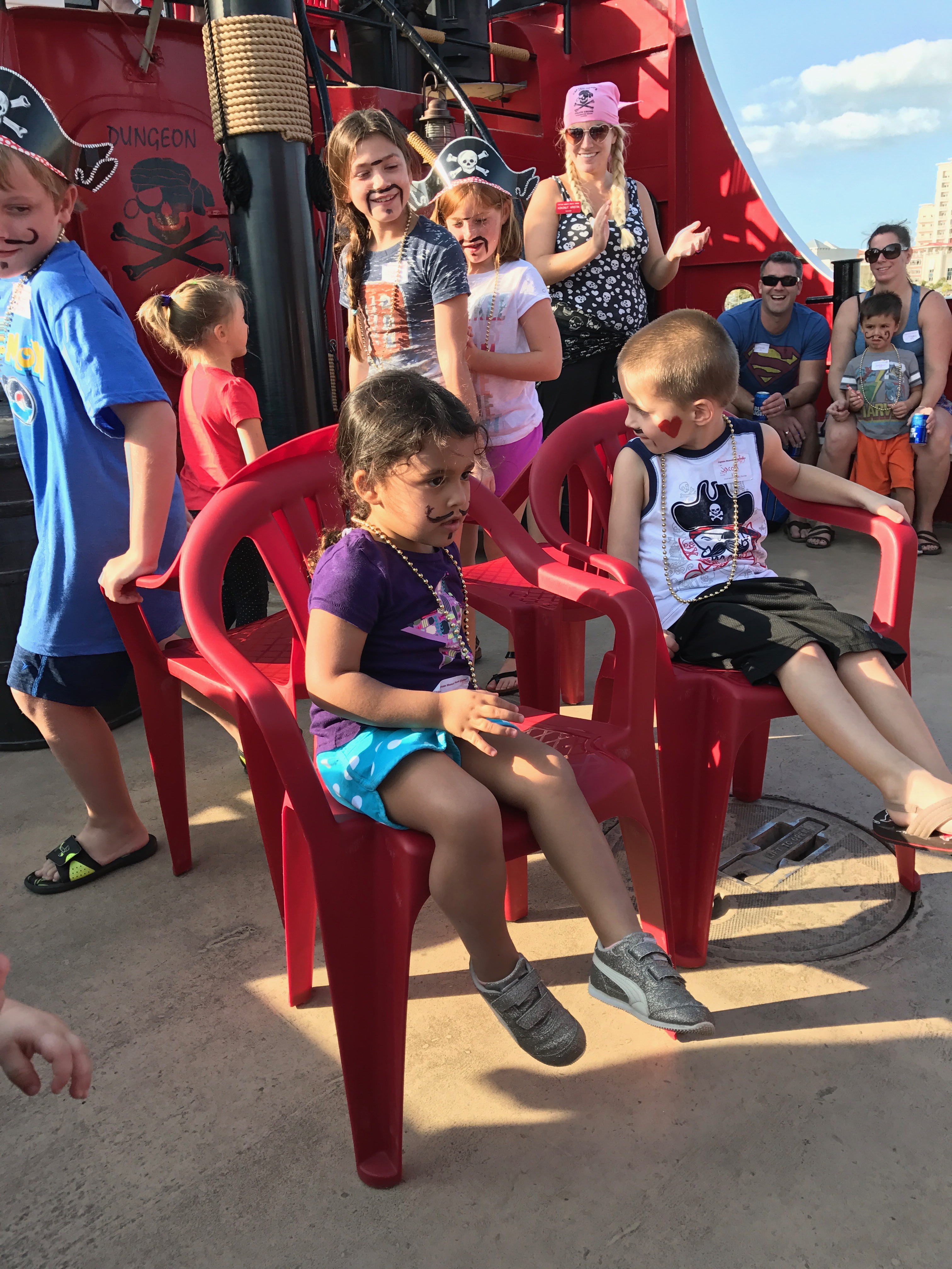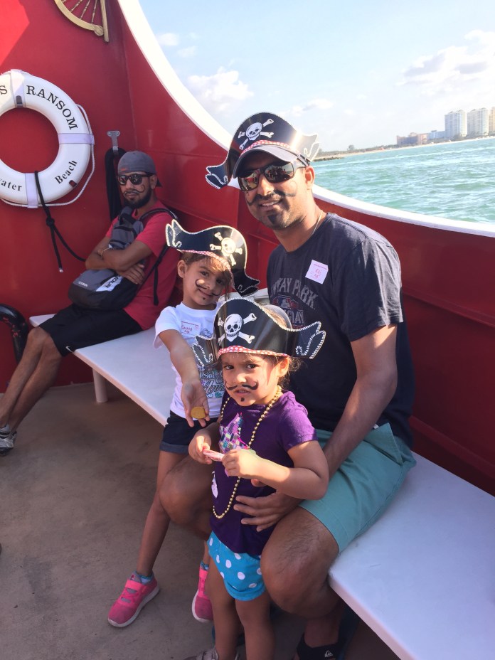 3. Captain Memo’s adventure boat tour. Hands down the best find. Raj found this one and I have to tell you I was skeptical about taking a 5 and 3 year old on a two hour boat trip on the ocean. But boy was I WRONG. AMAZING. The “pirates” take your children for basically the entire the boat ride while you stand back and watch them play games, sing songs, face paint etc. and they pump you with FREE (included in the $30 ticket cost) beer and wine. About an hour into the trip we hung out with dolphins who jumped and swam next to the boat for about 20 minutes. The kids and adults couldn’t get enough. This is one happy pirate. This is a must if you ever head to Clearwater.